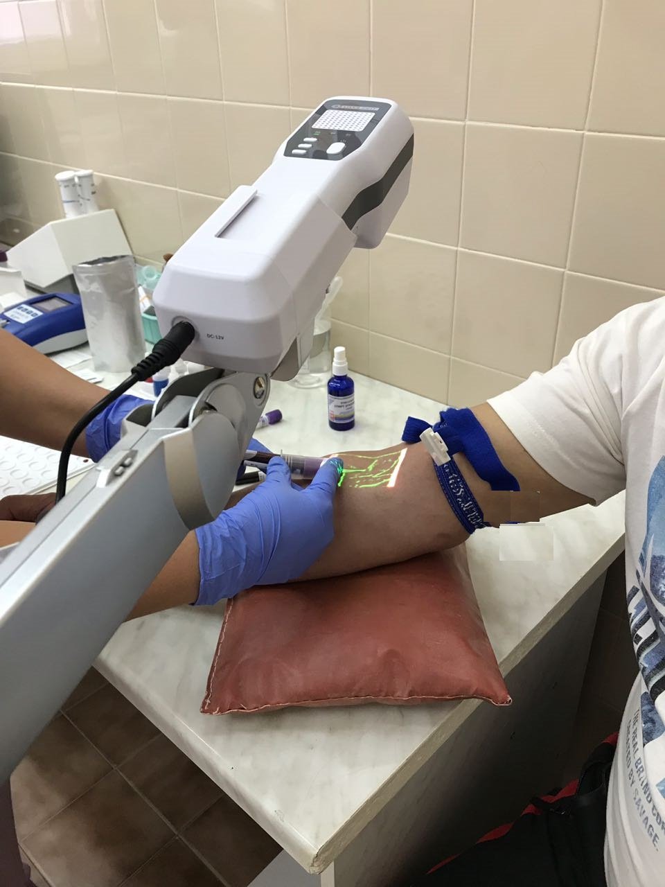 В нашем Областном центре крови используется уникальный аппарат визуализации вен VIVO 500S Projektion Vein Finder , позволяющий находить вены в сложных случаях.