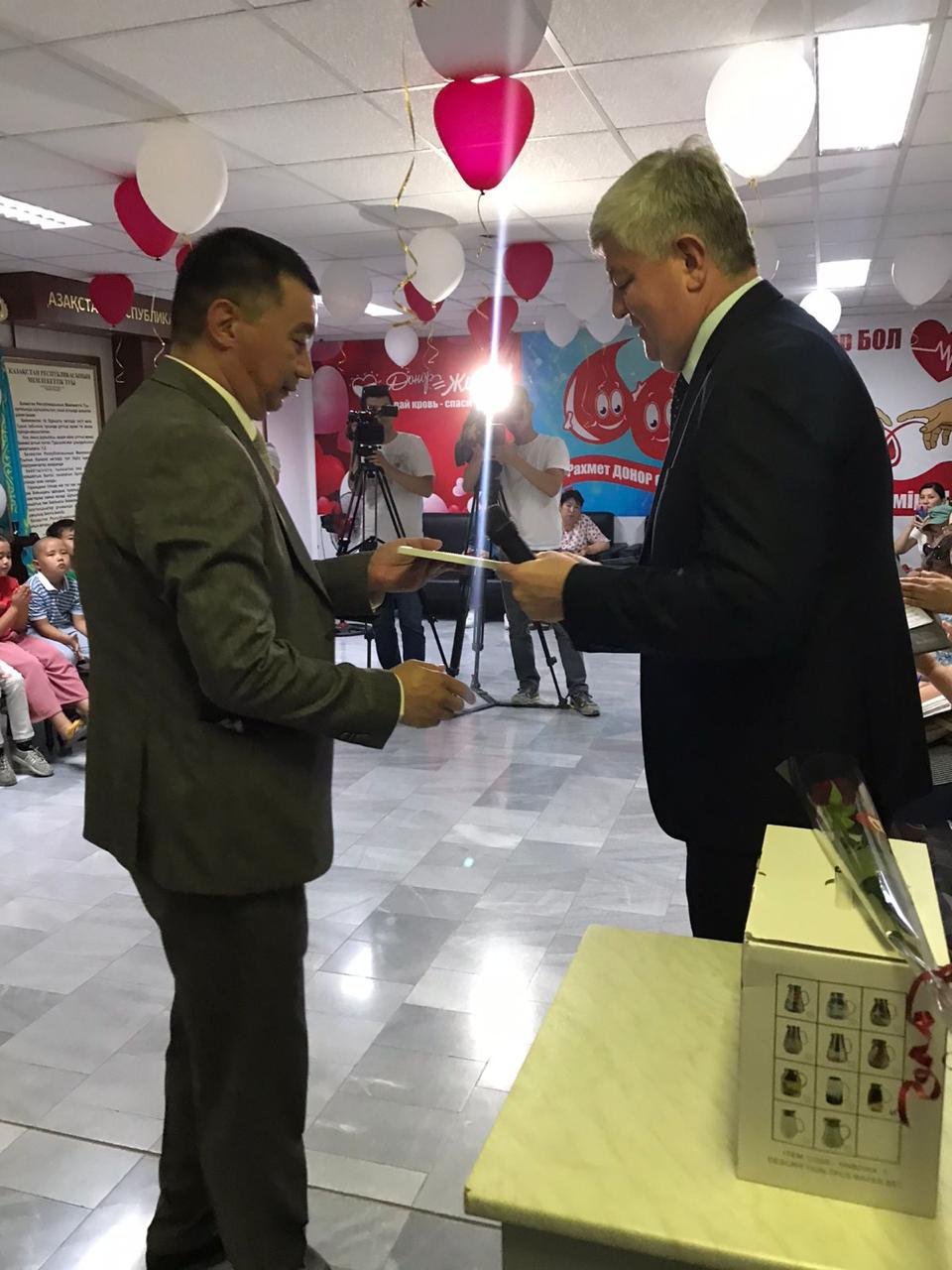 Өткен жылы барлығы 6151 донор қан тапсырса, жыл басынан бері 3455 адам донор болды. Қазіргі кезде орталықтың 200-ге жуық тұрақты донорлары бар. Бүгінгі мереке қарсаңында 70-тан аса донор қан тапсырды. Осы орайда бір тамшы қанымен ауыр халде науқастың жанына араша түсіп, үлкен азаматтық пен мол қайырымдылық танытқаны үшін біршама донорлар марапатталды.