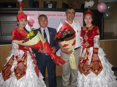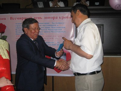 Барлық ұйым басшылары дәстүрлі құттықтау сөздерін айтып, акцияда донорлық қан тапсырып қан донорлығын дамытуға қосқан үлесі үшін естелік сыйлықтар берілді.